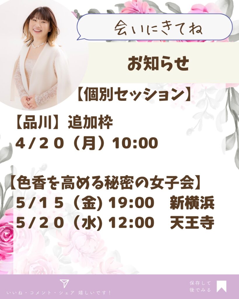 急遽、4月20日(月)個別セッションの追加枠ができました!